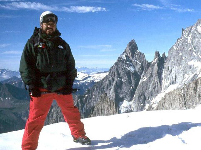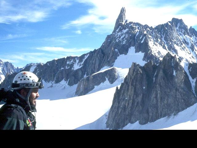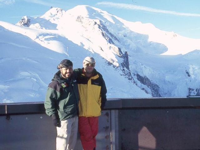 Con colegas de la Cruz Roja Española en la Aiguille du Midi (3,842 m/nm), al fondo el Mont Blanc de (4,810 m/nm).