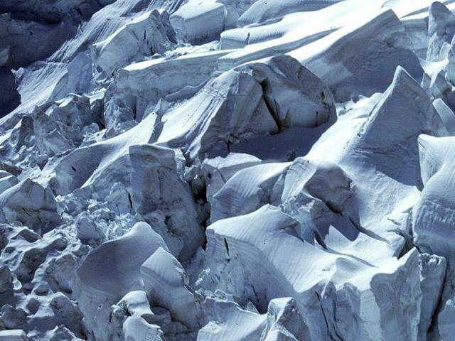 Aspecto de las grietas en el valle del glaciar.